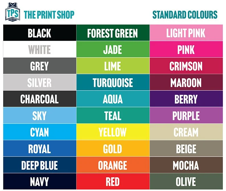 Need to customise colours? Choose from our standard TPS Colours or provide a HEX code for a specific colour.
