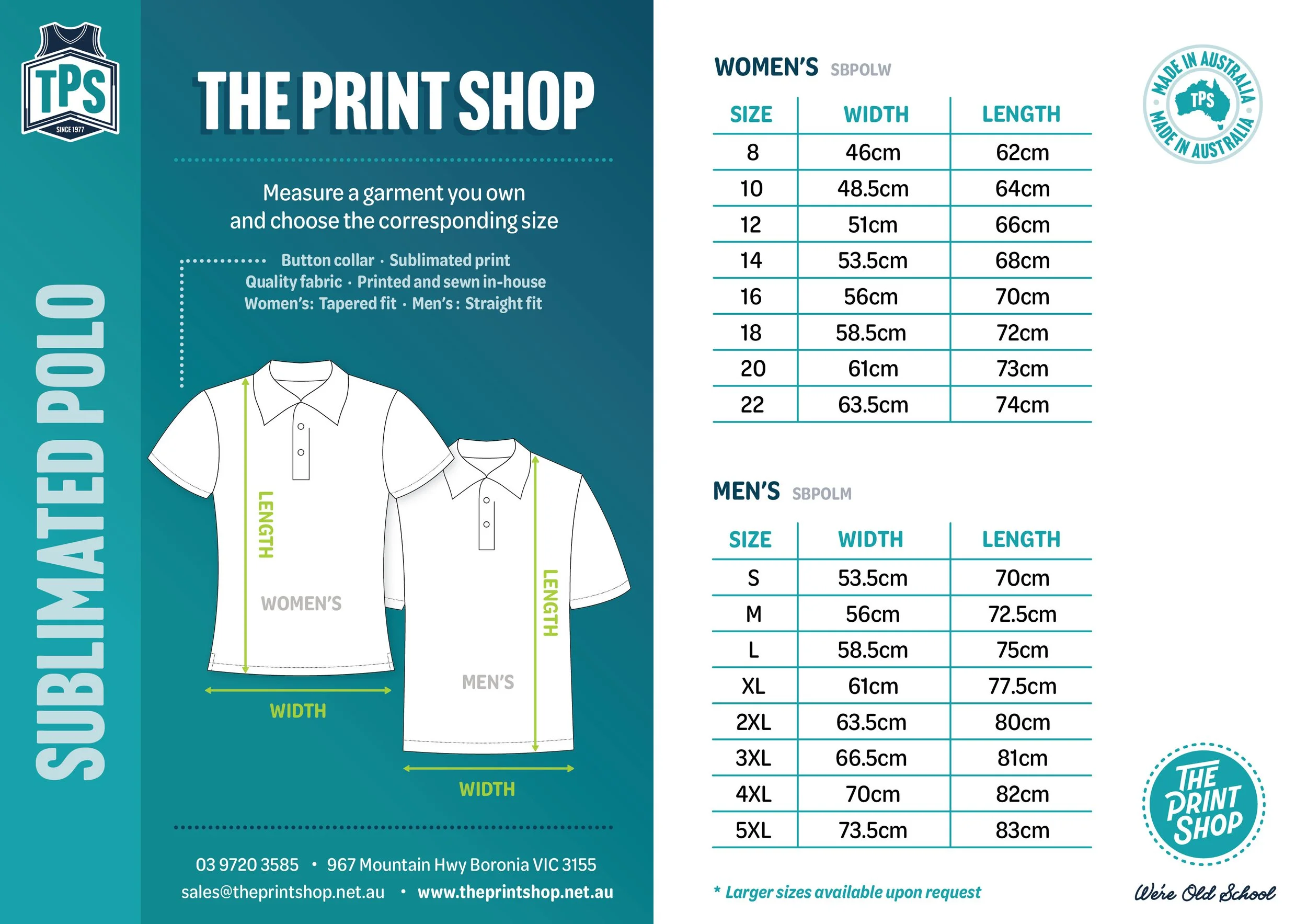 The Print Shop also offer a personalised online e-shop feature for clubs and teams, big or small. Ask us how: sales@theprintshop.net.au
