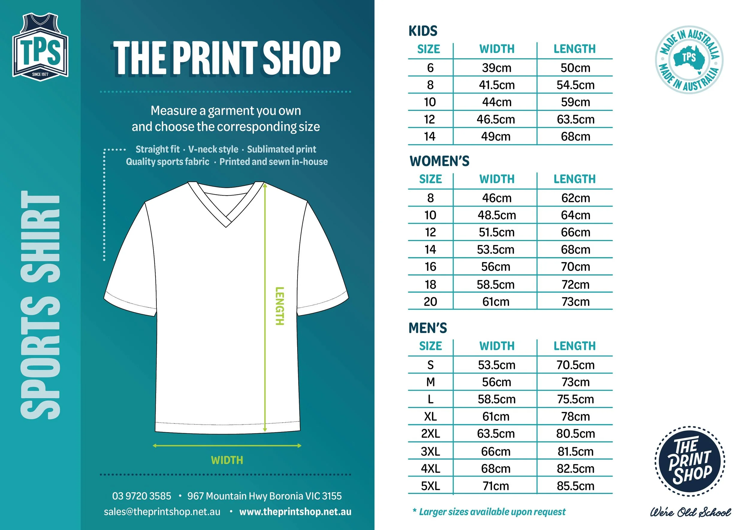 Get in touch today to find out how The Print Shop can create a truly unique look for your team. Would you like a custom design or team logo? No problem, get in touch at sales@theprintshop.net.au and we can help you with your request.